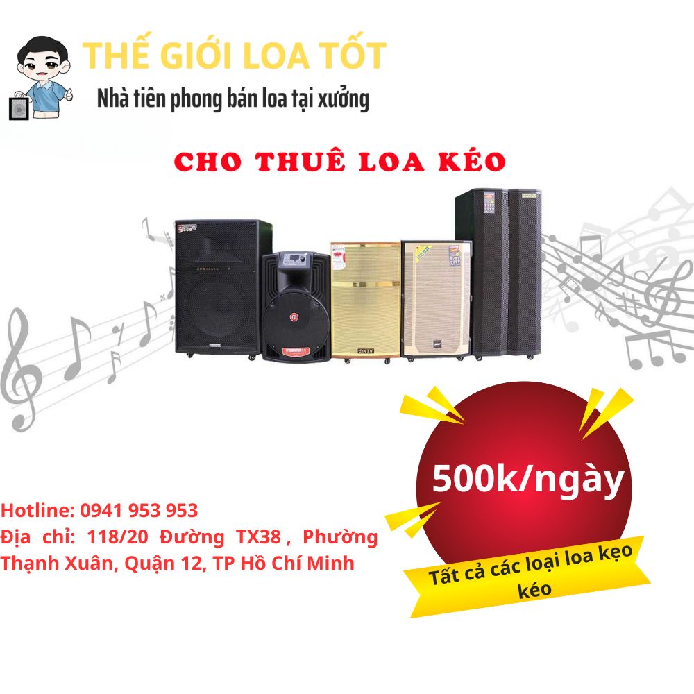 Thế Giới Loa tự hào cung cấp dịch vụ cho thuê các loại loa kẹo kéo với mức giá cực kỳ cạnh tranh, chỉ 500k/ngày. Chúng tôi có đa dạng các loại loa, từ loa công suất lớn cho các sự kiện ngoài trời đến loa nhỏ gọn dễ di chuyển phù hợp cho các buổi tiệc trong nhà.